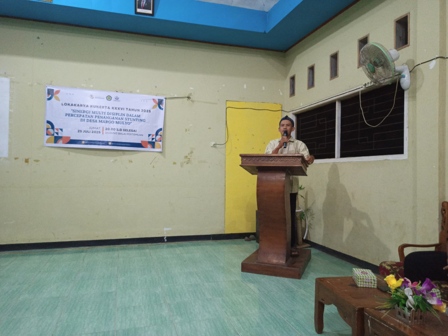 Margo Mulyo, 25 Juli 2025 — Kelompok Kuliah Kerja Nyata Terpadu (KUKERTA) XXXVI UNIHAZ Bengkulu, menggelar lokakarya bertajuk "Sinergi Multi Disiplin dalam Percepatan Penanganan Stunting di Desa Margo Mulyo" pada Jumat malam, 25 Juli 2025. Acara berlangsung di Gedung Balai Sasana Mangun Karaso Desa Margo Mulyo.